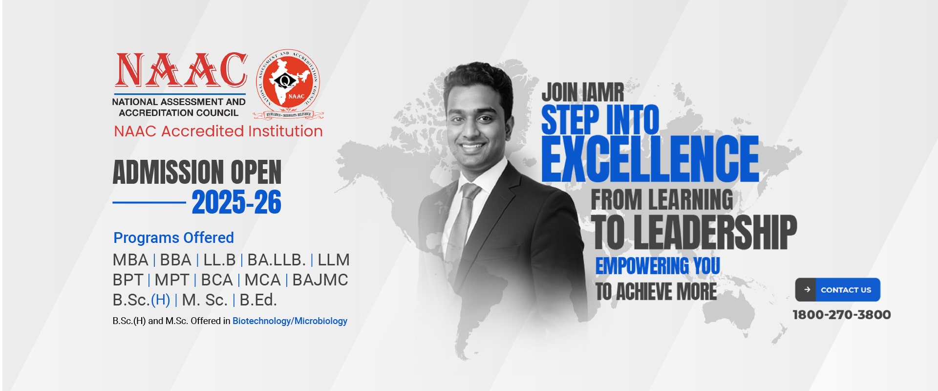 IAMR Group of Institutions offers a wide range of career-oriented programs designed to nurture innovation, leadership, and excellence. From Management, Biotechnology, Journalism and Mass Communication, Microbiology, Computer Application and Physiotherapy to Law, Education, and Life Sciences, each program is tailored to meet industry standards and global academic benchmarks. With experienced faculty, modern infrastructure, and practical learning opportunities, IAMR prepares students to excel in their chosen fields and become future-ready professionals.