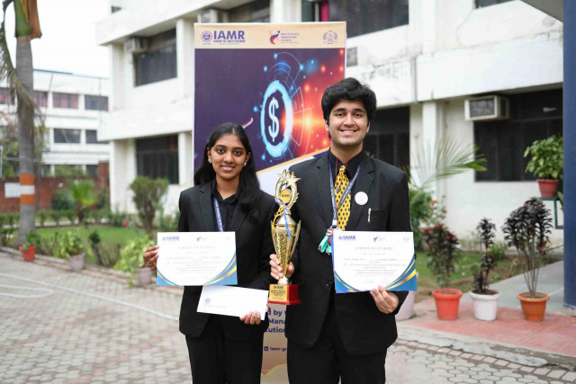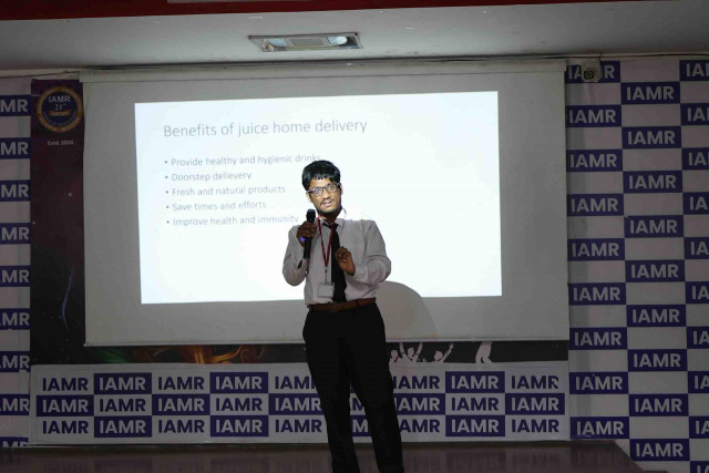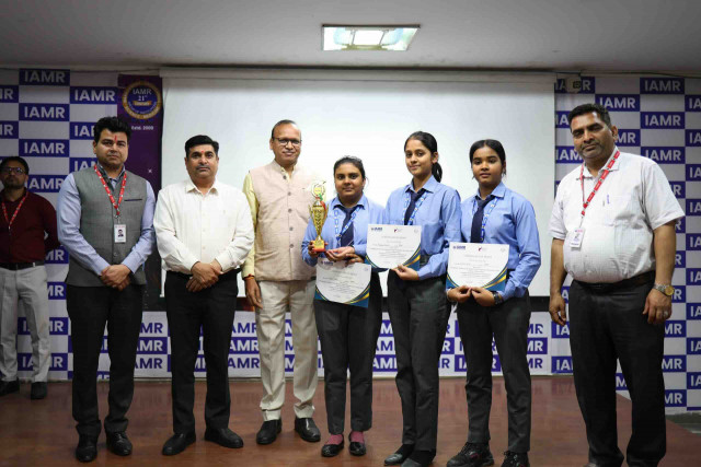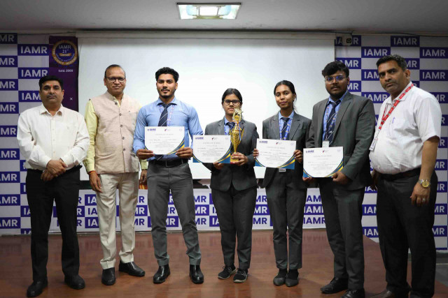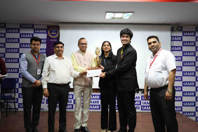 With an enthusiastic participation of around 100 students, the event became a vibrant platform for showcasing innovative ideas, strategic thinking, and entrepreneurial excellence in the presence of experienced panel of judjes: Dr. Nirdosh Aggarwal (Dean- Management, HRIT University), Dr. Pramod Kumar Garg (HOD- Management, IAMR Group of Institutions) and Prof. Sachin Goswami (HOD- BAJMC Department, IAMR Group of Institutions)