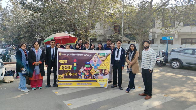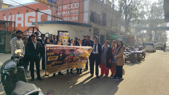 IAMR Law College, in collaboration with Bharat Putra Foundation, organized a Road Safety Awareness Rally under the Road Safety Campaign to promote responsible driving and public safety. The rally commenced from the college gate at Duhai and proceeded towards Duhai Metro Station, where students actively sensitized commuters and pedestrians about traffic rules and road safety measures. Students interacted with the public on Meerut–Delhi Road, spreading awareness about the importance of wearing helmets and seat belts and following traffic regulations to prevent accidents. Principal Dr. Meenakshi Tomar addressed the students at the outset, emphasizing the need to educate society to reduce road mishaps. Faculty members and foundation representatives actively coordinated the initiative, making the rally a meaningful step toward community engagement and social responsibility.