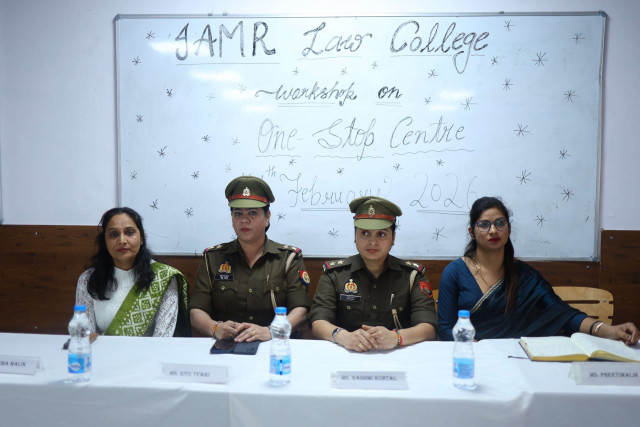 IAMR Law College organized an awareness workshop on the One Stop Centre (OSC) to educate students about support services for women affected by violence. Resource persons Ms. Ritu Tyagi, Ms. Preeti Malik, Ms. Rashmi Kuntal, and Ms. Seema Malik shared insights on legal aid, medical assistance, police support, counselling, and shelter services under the OSC scheme. The Management, including Mr. Anshu Bansal (Chairman), Mr. Sanjay Bansal (Secretary), and Mr. P.K. Vaishisth (Director), welcomed the chief guests and emphasized the importance of legal awareness and social responsibility. Dr. Minaxi Tomar, Principal, encouraged students to uphold sensitivity and justice in their professional journey. The program concluded with an interactive session and a Vote of Thanks, reaffirming the college’s commitment to legal literacy and community service.