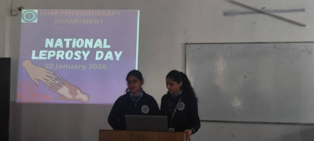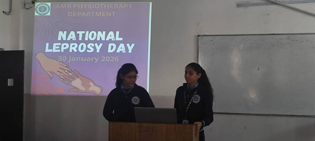 Physiotherapy department commemorated National Leprosy Day by educating students about the disease. All thanks to mrs Anshu Bansal mam, chairperson IAMR college, Mr Sanjay Bansal sir, secretary IAMR college and Dr Pradeep Vashistha sir, Group director IAMR college for their blessings. Also thanks to Dr. Raj Kumar Meena, principal, Iamr physiotherapy department and Dr. Monika Sharma , Hod Physiotherapy department for their constant support and guidance.