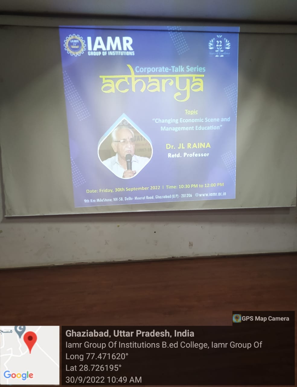 Todays 1st session of MBA Orientation. Retd. Prof. J L Raina taking session.